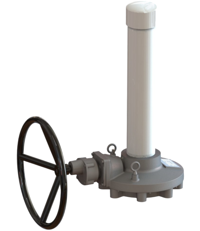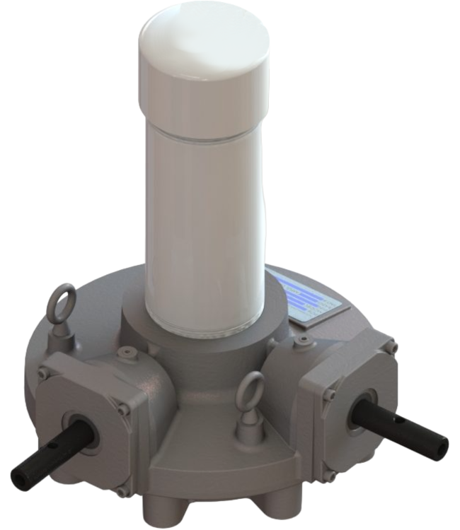 WedgeRock RB Series Bevel Gear Line: a pinnacle of versatility and durability. Its modular design seamlessly integrates with various applications from Quarter-Turn to Rising Stem. Requiring zero maintenance, it’s 90% filled and greased for life. Achieving IP68 standards and holding Buy America, AWWA, and ATEX certifications, it’s ready for both Motorized and Manual inputs. Notably compatible with the RT & RTC Series bases and the RP Planetary Gear Series, it boasts an impressive output torque up to 1,000,000 In-Lbs [11,300 Nm]. Tailored for diverse settings with customized temperature ranges and direct mount features, the RB stands as a benchmark in actuation.
